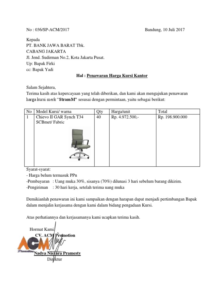 Surat Penawaran Kursi Sumber : www.scribd.com